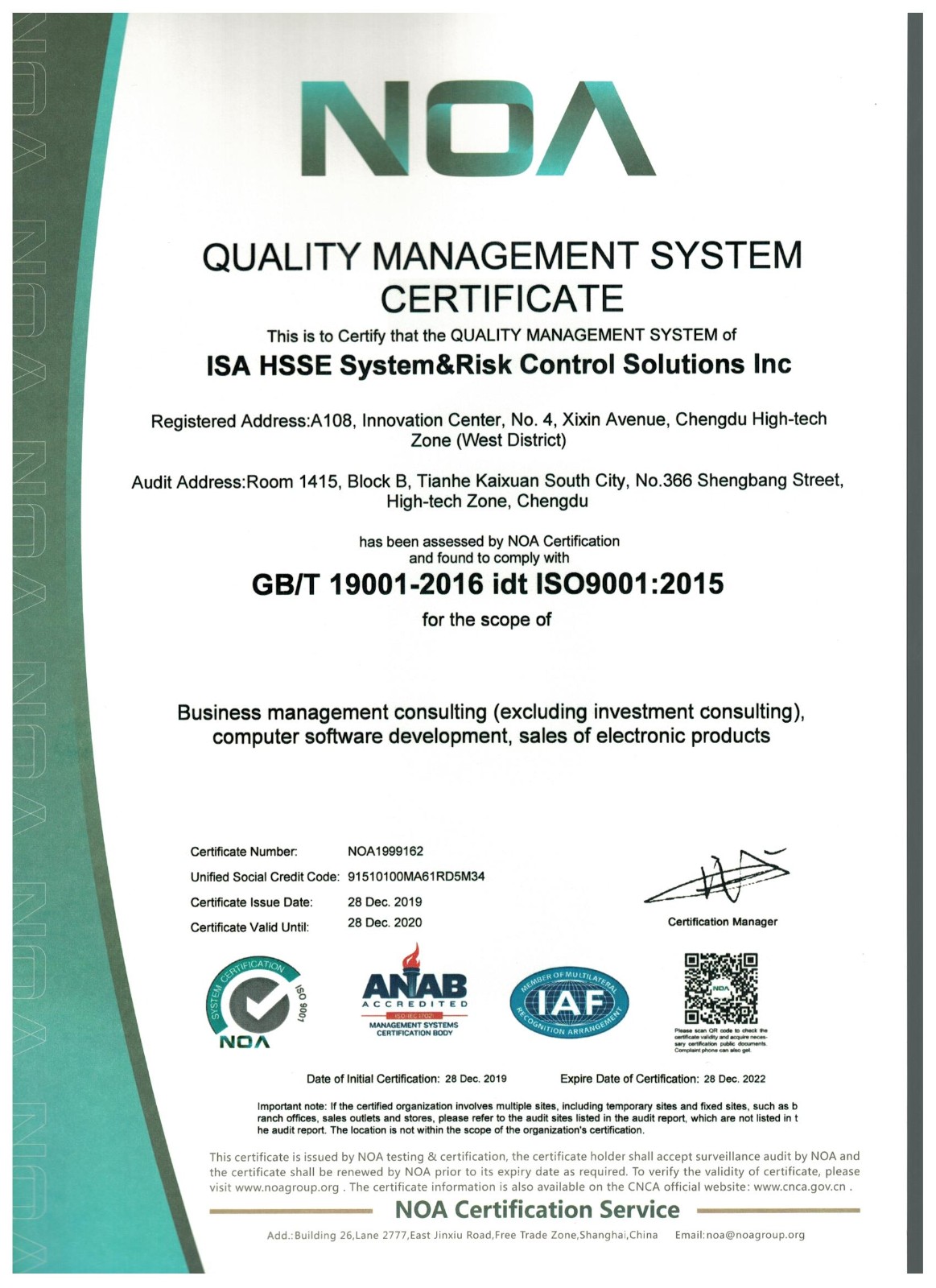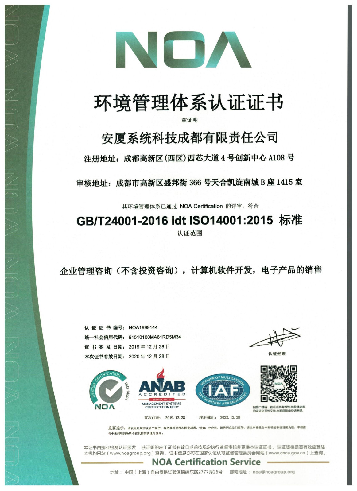 安廈系統科技成都有限責任公司成立于2015年,專注于提供風險管理整體咨詢及技術服務,業務涵蓋安全健康環保管理體系咨詢服務、安全生產標準化建設咨詢服務、應急預案咨詢服務、第三方安全監管服務、安全培訓服務、安全信息化開發服務。