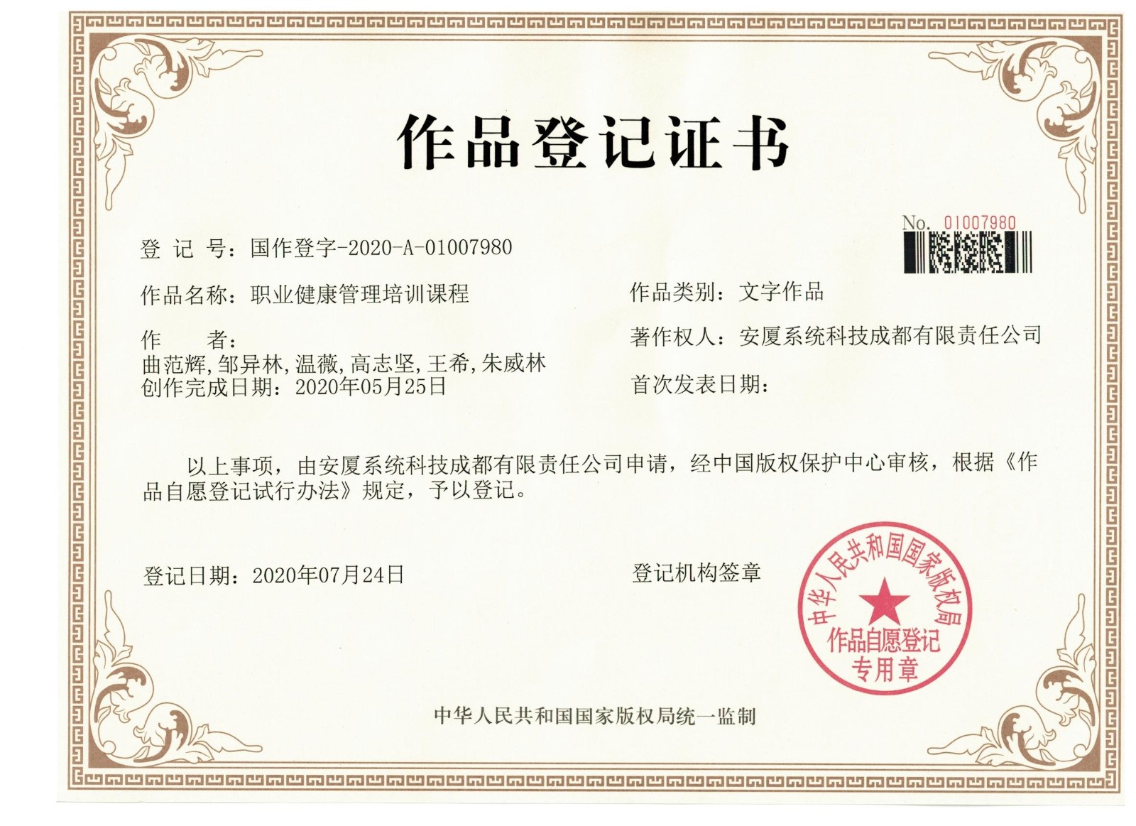 • 作品登記證書