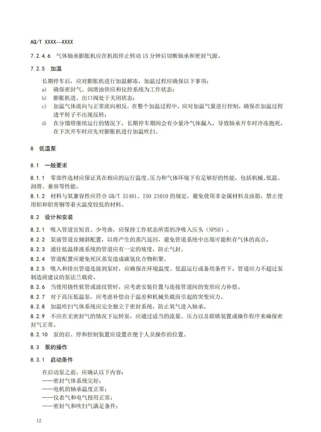 本標準規定了深冷空分裝置的總體布局、吸入空氣質量控制、壓縮機、膨脹機、低溫泵、空分冷箱和精餾系統、產品儲運、稀有氣體裝置、控制系統、安全操作運行、人員管理與事故應急處置等內容的要求。