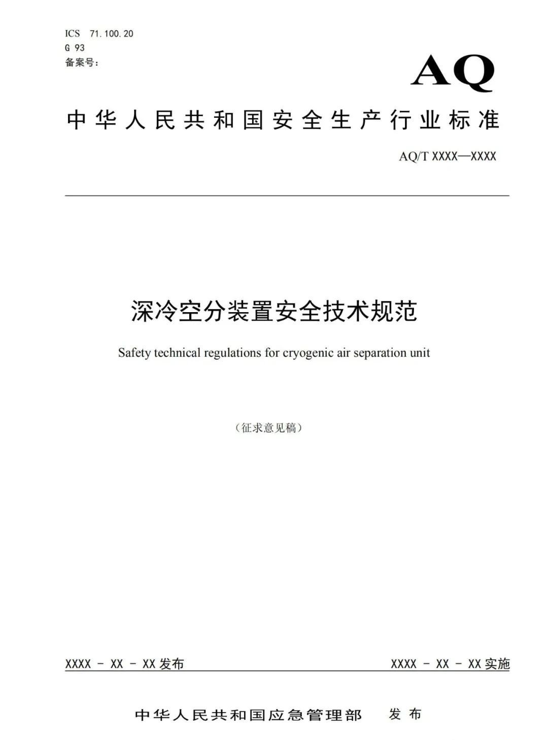 應急管理部對《深冷空分裝置安全技術規范》等兩項標準征求意見