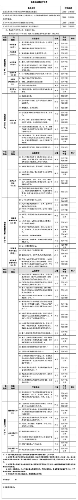 各地可結合本地區經濟社會發展水平、行業分布特點、健康城市建設總體部署和企業員工實際需求等因素,參照本指南制定符合本地區健康企業建設需求的技術評估指標體系和指標評估細則,定期對健康企業建設效果進行評估,不斷完善健康企業建設。