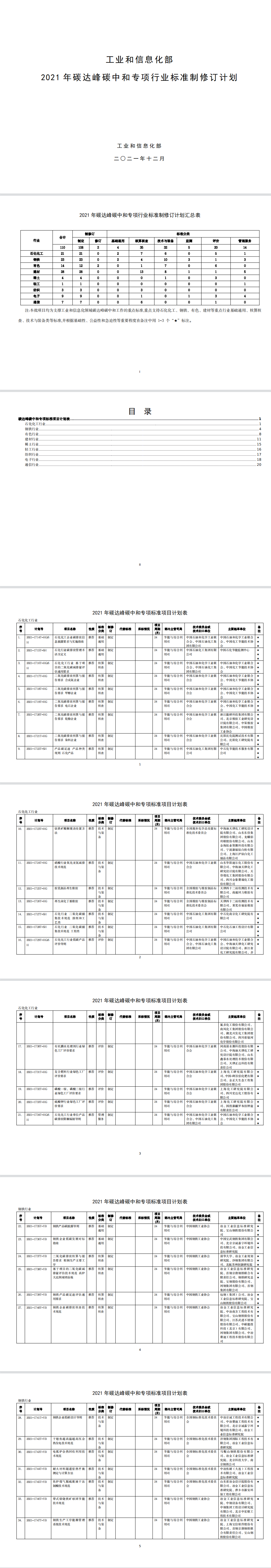 為發揮標準在推進工業領域碳達峰碳中和工作的引領和規范作用,我部編制完成了2021年碳達峰碳中和專項行業標準制修訂項目計劃。現印發給你們,請認真組織落實。有關事項通知如下: