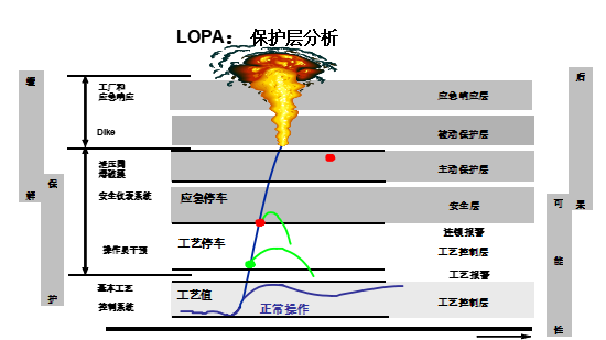 LOPA是由事件樹分析發(fā)展而來的一種風(fēng)險(xiǎn)分析技術(shù),作為辨識和評估風(fēng)險(xiǎn)的半定量工具,是溝通定性分析和定量分析的重要橋梁與紐帶。LOPA耗費(fèi)的時(shí)間比定量分析少,能夠集中研究后果嚴(yán)重或高頻率事件,善于識別、揭示事故場景的始發(fā)事件及深層次原因,集中了定性和定量分析的優(yōu)點(diǎn),易于理解,便于操作,客觀性強(qiáng),用于較復(fù)雜事故場景效果甚佳。所以在工業(yè)實(shí)踐中一般在定性的危害分析如HAZOP,檢查表等完成之后,對得到的結(jié)果中過于復(fù)雜的、過于危險(xiǎn)的以及提出了SIS要求的部分進(jìn)行LOPA,如果結(jié)果仍不足以支持最終的決策,則會(huì)進(jìn)一步考慮如QRA等定量分析方法。