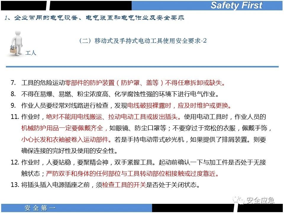 事故案例64:某施工現(xiàn)場一電動切割機外殼沒有有效接地,漏電開關(guān)不合格,使用前未檢查。施工人員走近切割機,沒穿絕緣鞋,外殼放電,人員觸電死亡。