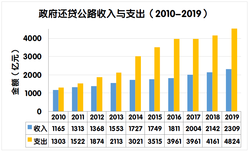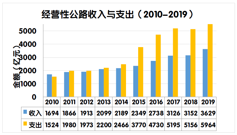 2019年度全國收費公路通行費收支缺口比上年增加780.4億元,增長19.2%。主要原因是2019年度通行費支出總額較上年增加。一是2019年度部分收費公路債務(wù)到期,償還債務(wù)本金支出較上年凈增525.9億元;二是隨著債務(wù)規(guī)模的擴(kuò)大,償還利息支出凈增169.0億元;三是新建ETC門架系統(tǒng)、改造ETC車道、安裝入口不停車稱重檢測系統(tǒng)、省界收費站正線設(shè)施改造工程等支出。