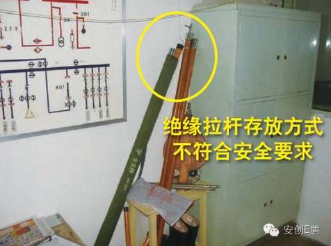 排查依據(jù):DB 11527-2008《變配電室安全管理規(guī)范》5.18.5 絕緣拉桿應(yīng)懸掛或架在支架上,不應(yīng)與墻接觸。