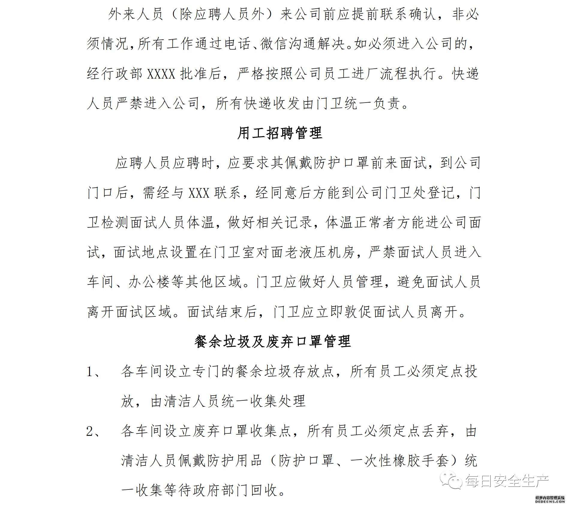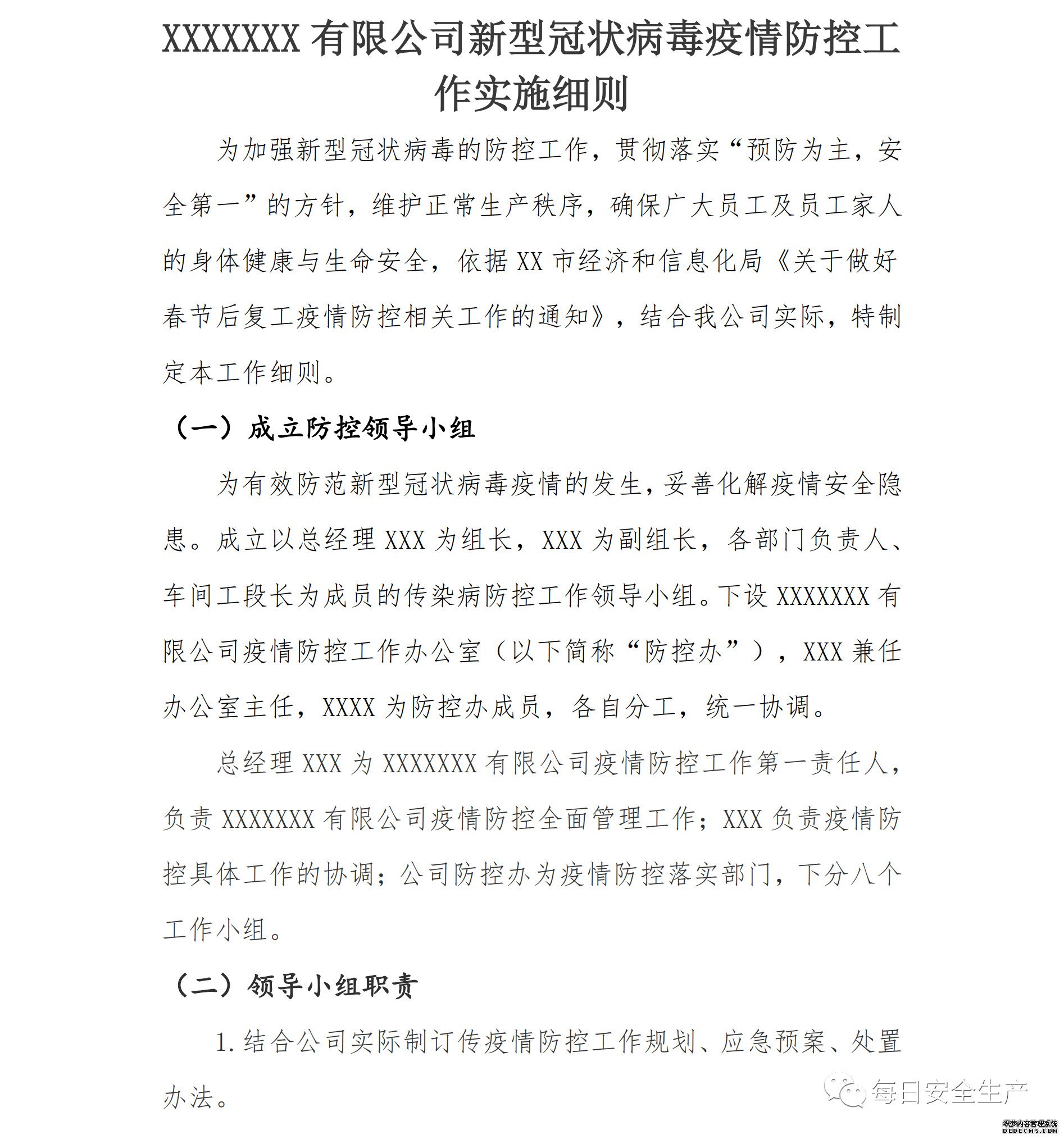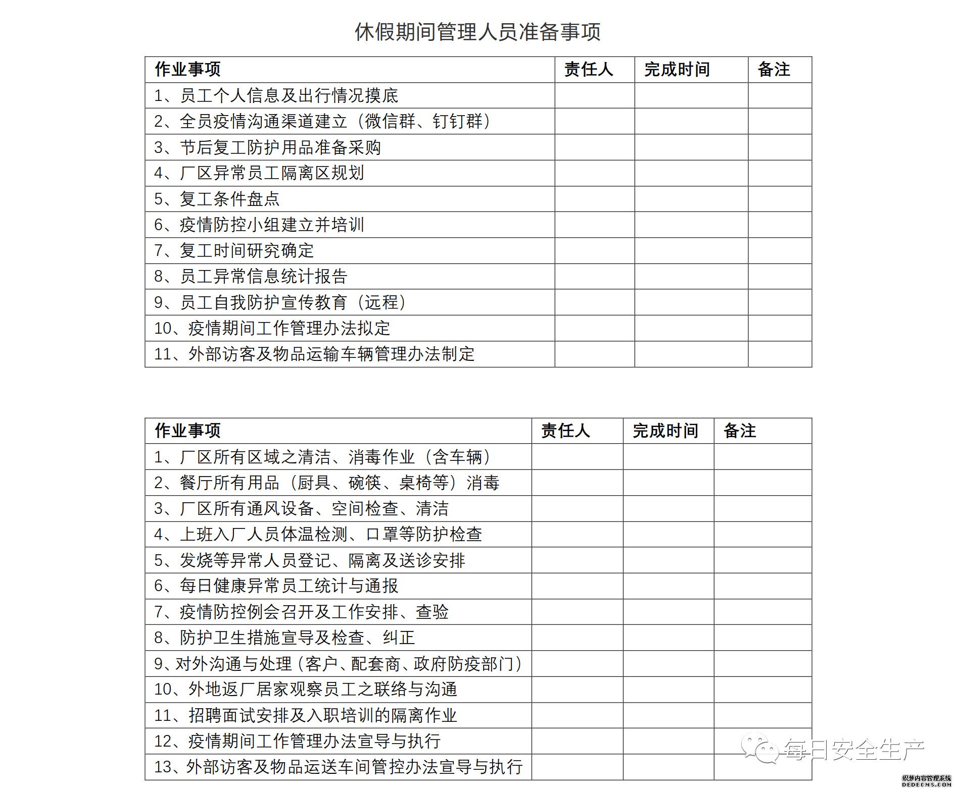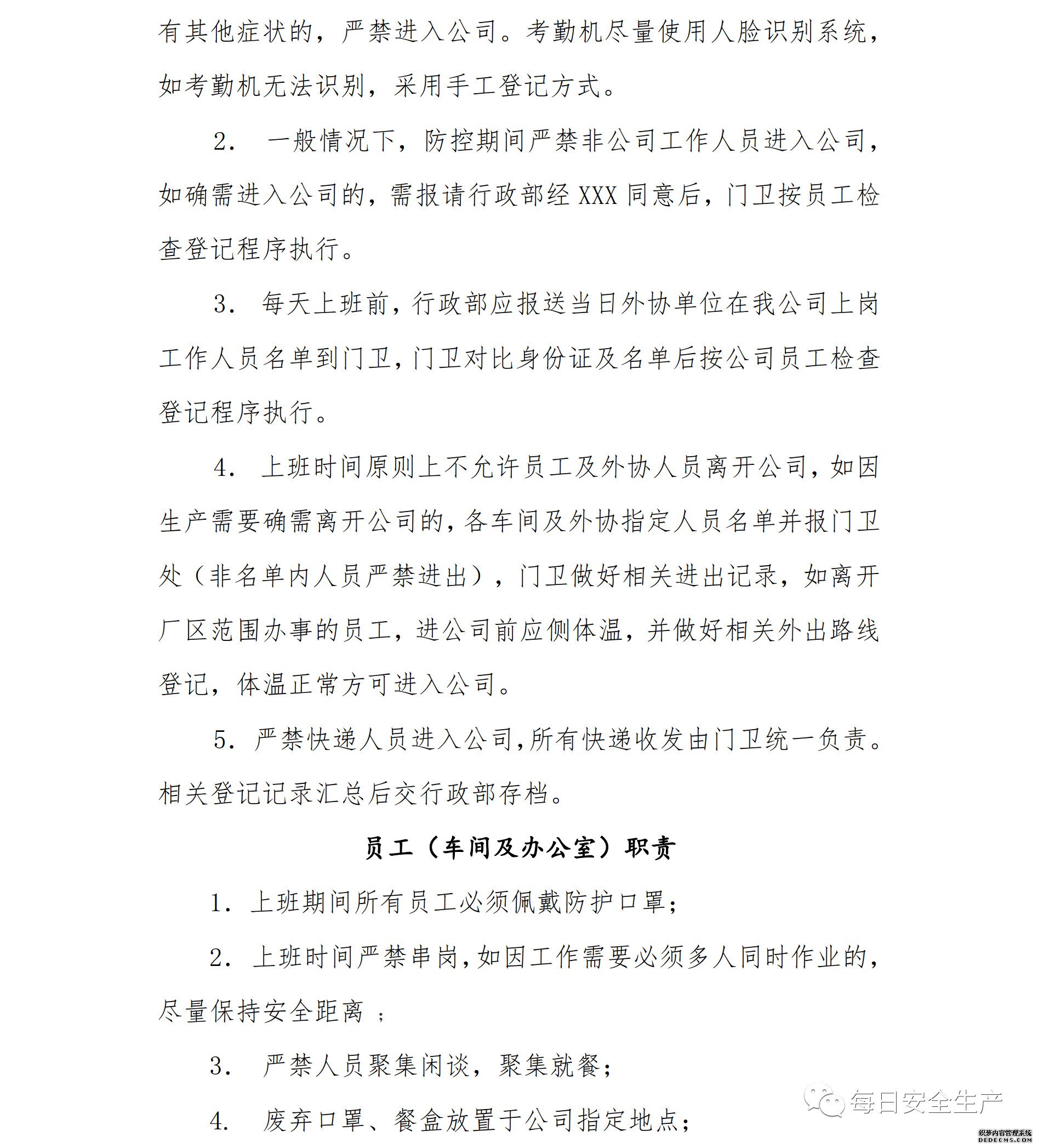 必須制定企業疫情防控工作方案和復工生產實施方案;