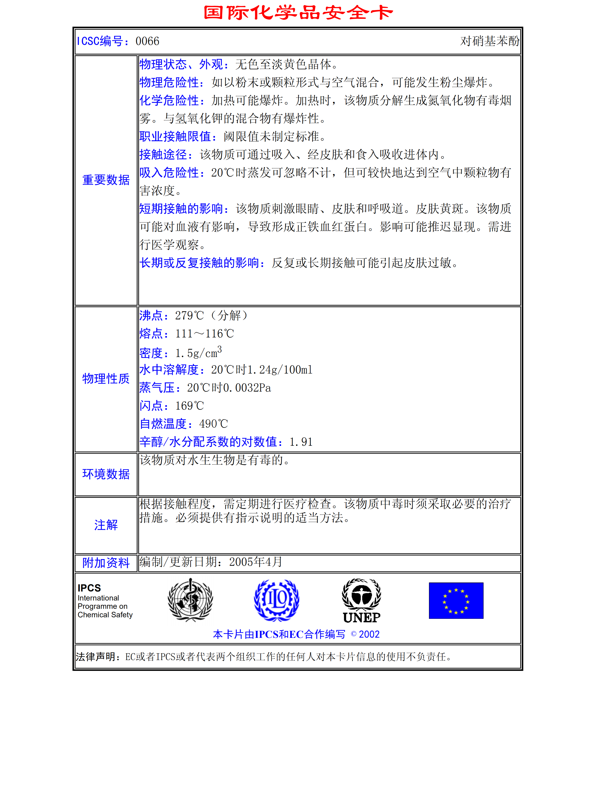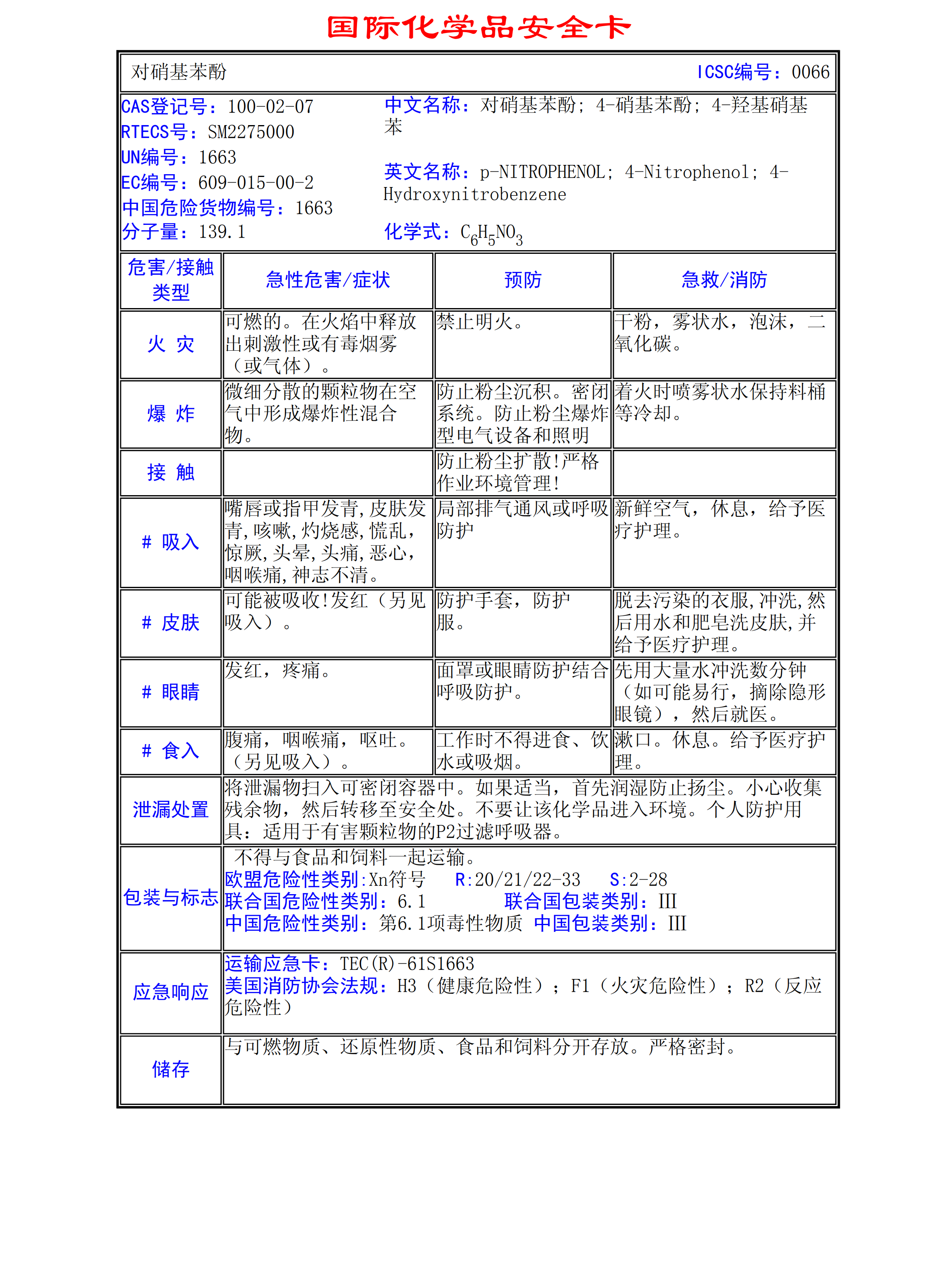 對硝基苯酚MSDS