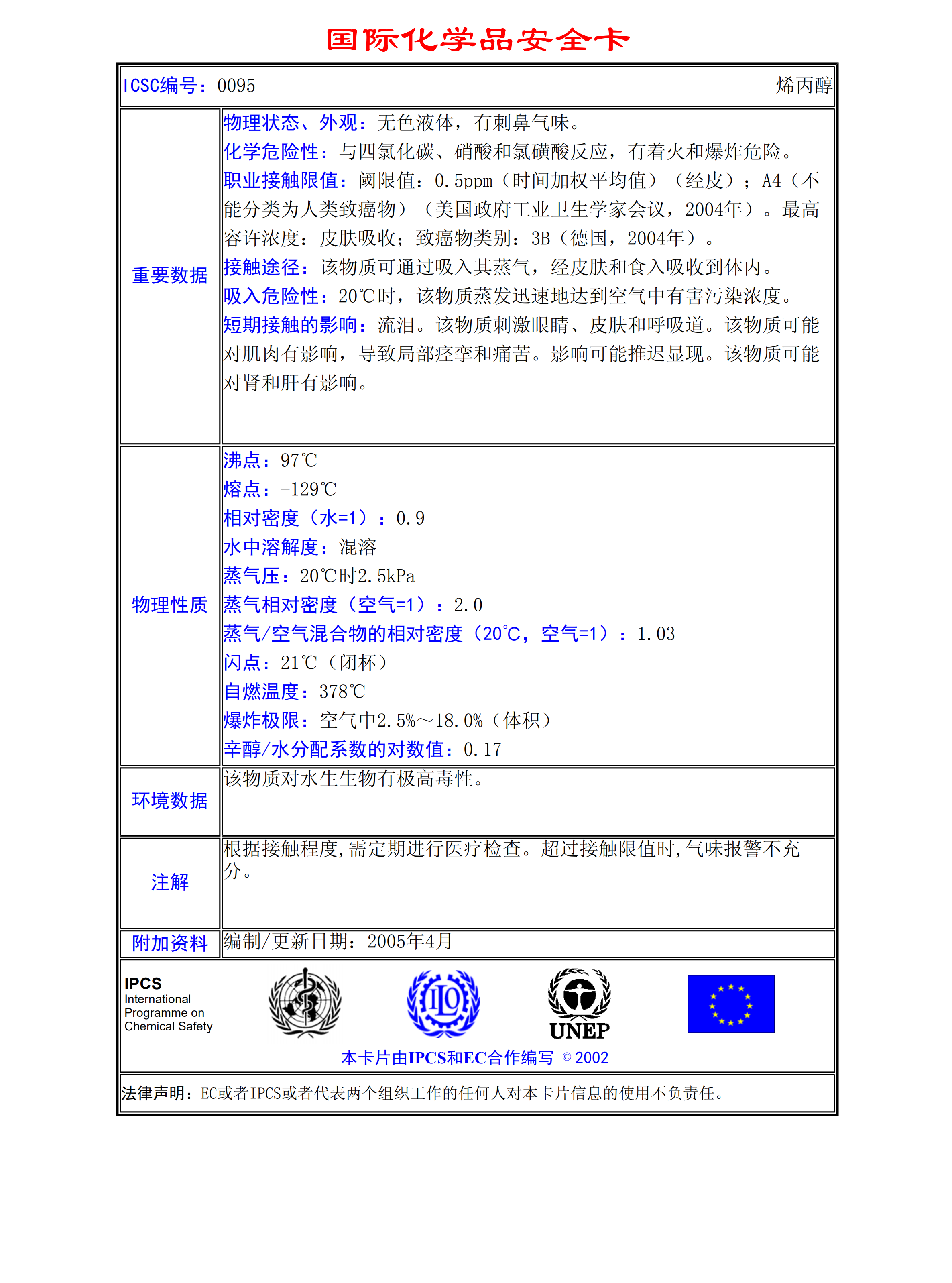 烯丙醇MSDS