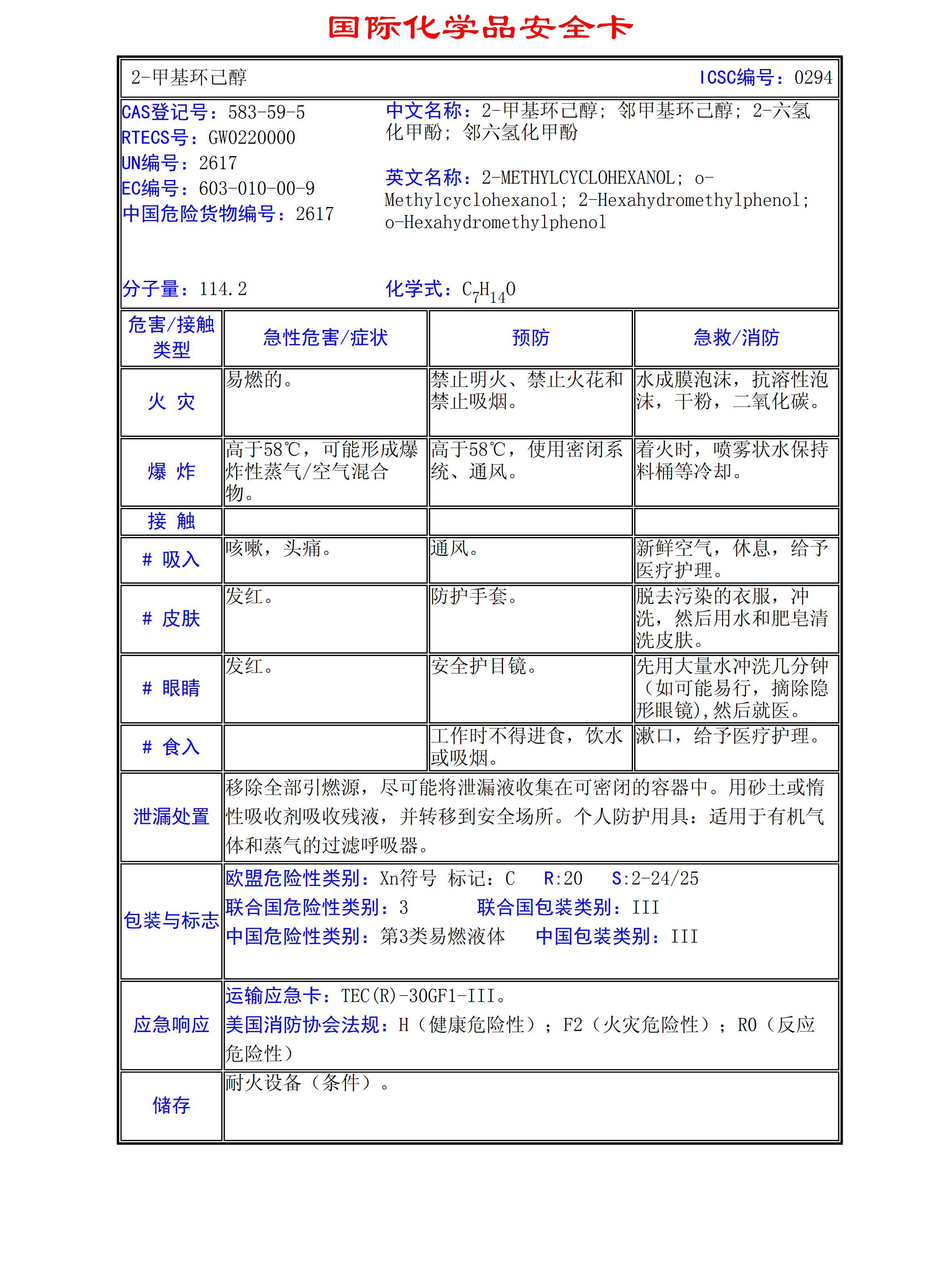 2-甲基環己醇MSDS