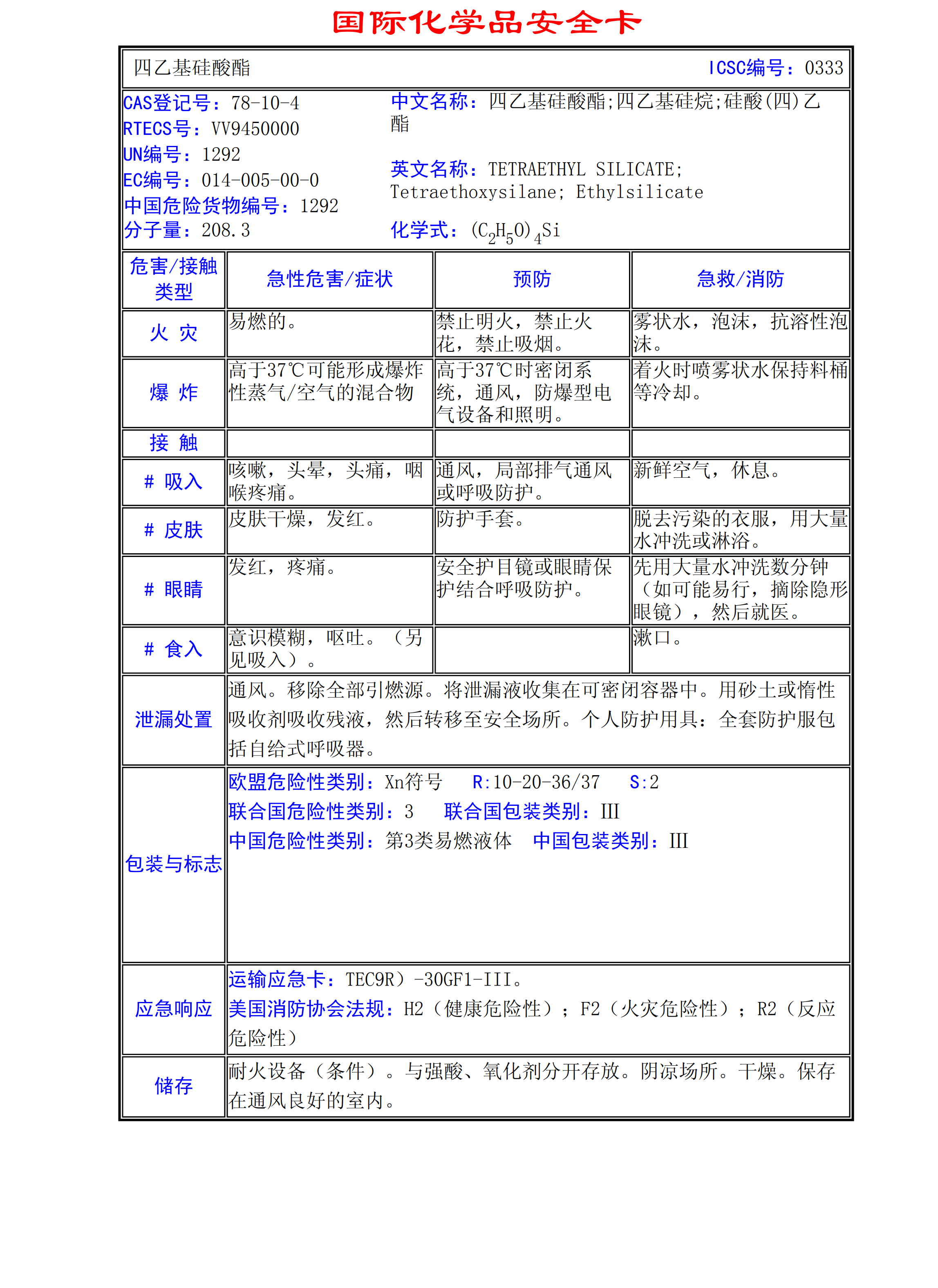 四乙基硅酸酯MSDS