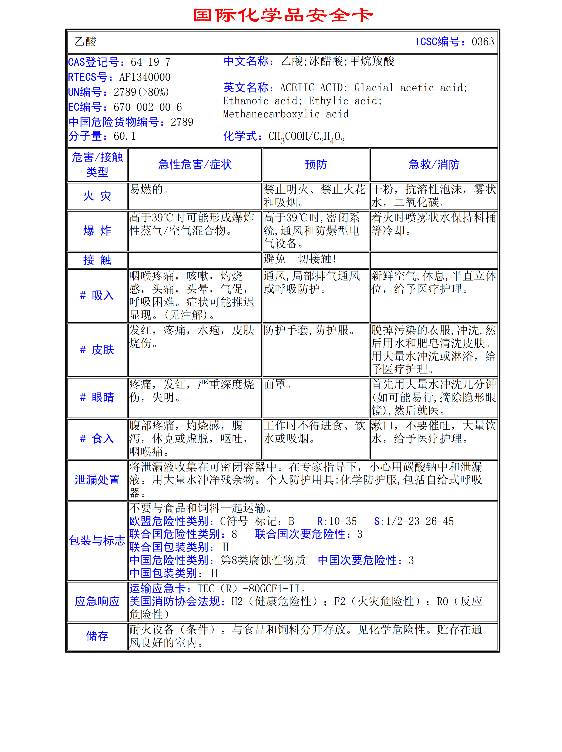乙酸MSDS