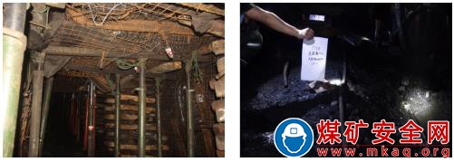 巷道支護系統(tǒng)沒有承受住強動載沖擊。事故巷道沿底板托頂煤掘進,上部為頂煤和泥巖組成的復合頂板,節(jié)理發(fā)育,受到沖擊后易碎脹破壞。從事故現場情況看,礦井按照《煤巷錨桿支護技術規(guī)范》設計的巷道支護,但這次沖擊載荷超過現支護的承載能力,造成事故區(qū)域巷道破壞。