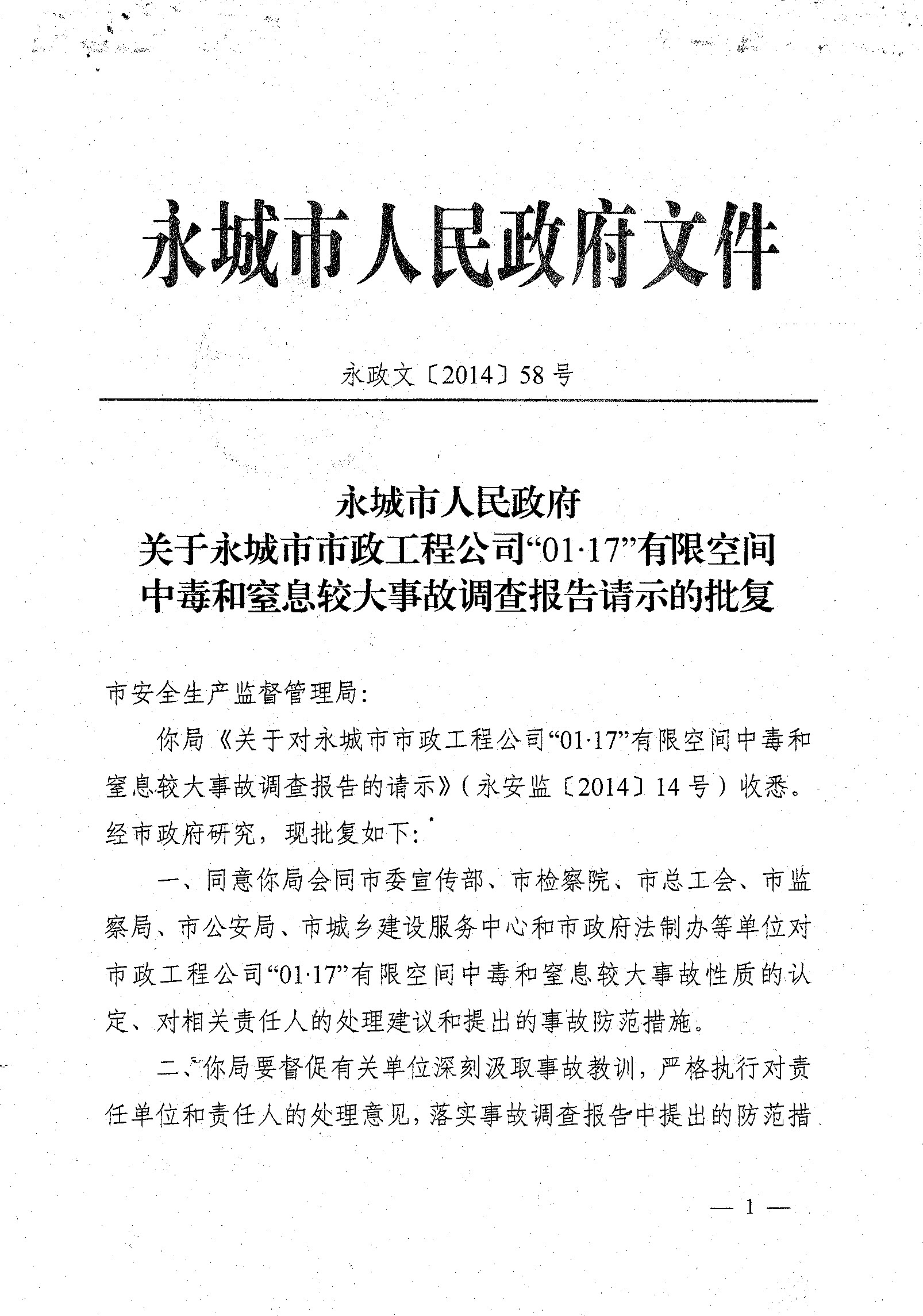 關于寧波“1·26”較大窒息死亡事故調查報告的批復