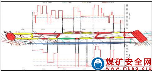 (1)開拓開采系統。礦井采用立井開拓。布置 1#主井、2#主井、副井、南風井和北風井共 5 個井筒,井底車場標高為-810m。礦井劃分為 13 個采區,現開采四個采區:一采區北翼、二采區南翼、二采區北翼、八采區。現布置 3 個綜放工作面,1 個矸石充填工作面,1 個備用工作面,13 個掘進工作面。采煤方法為走向長壁后退式采煤法,綜合機械化放頂煤開采工藝,全部垮落法管理頂板,掘進工藝為綜掘和炮掘。