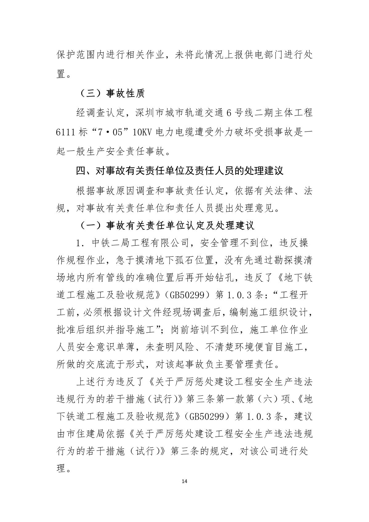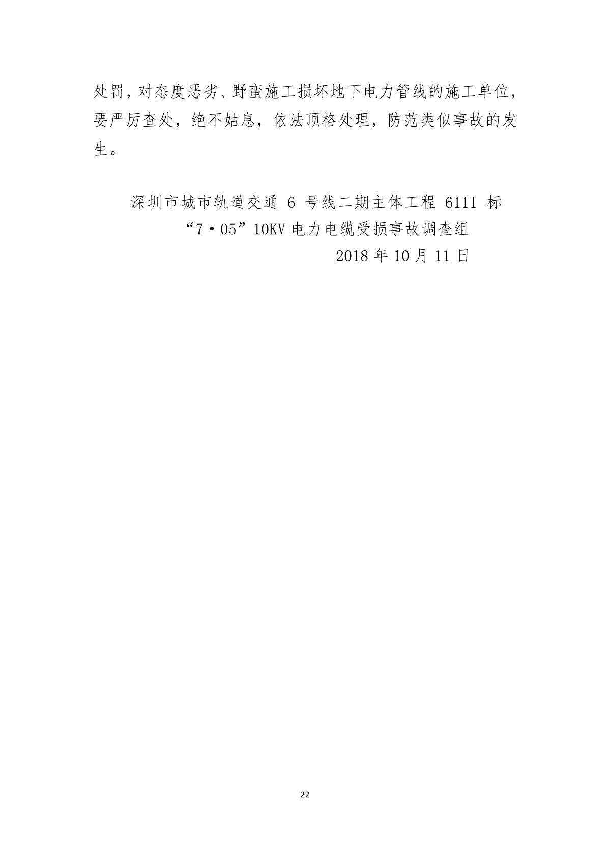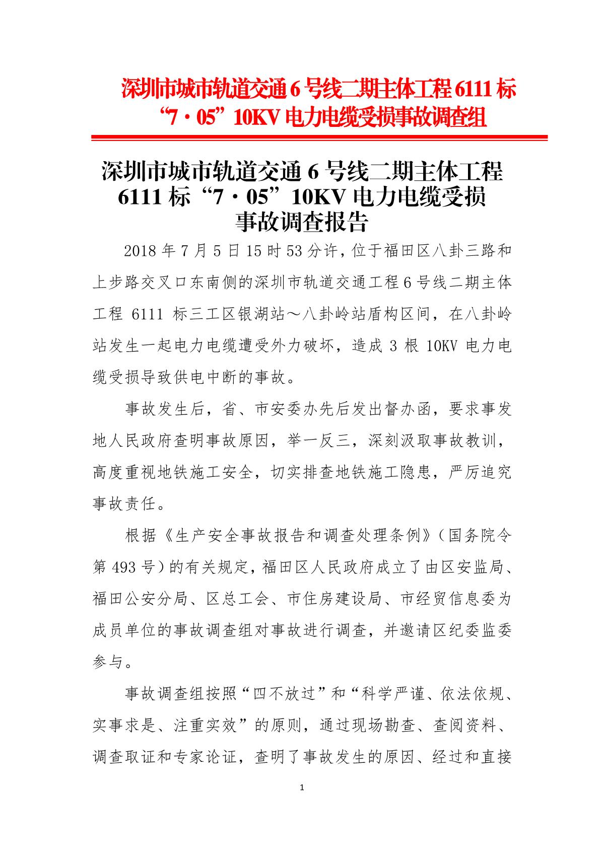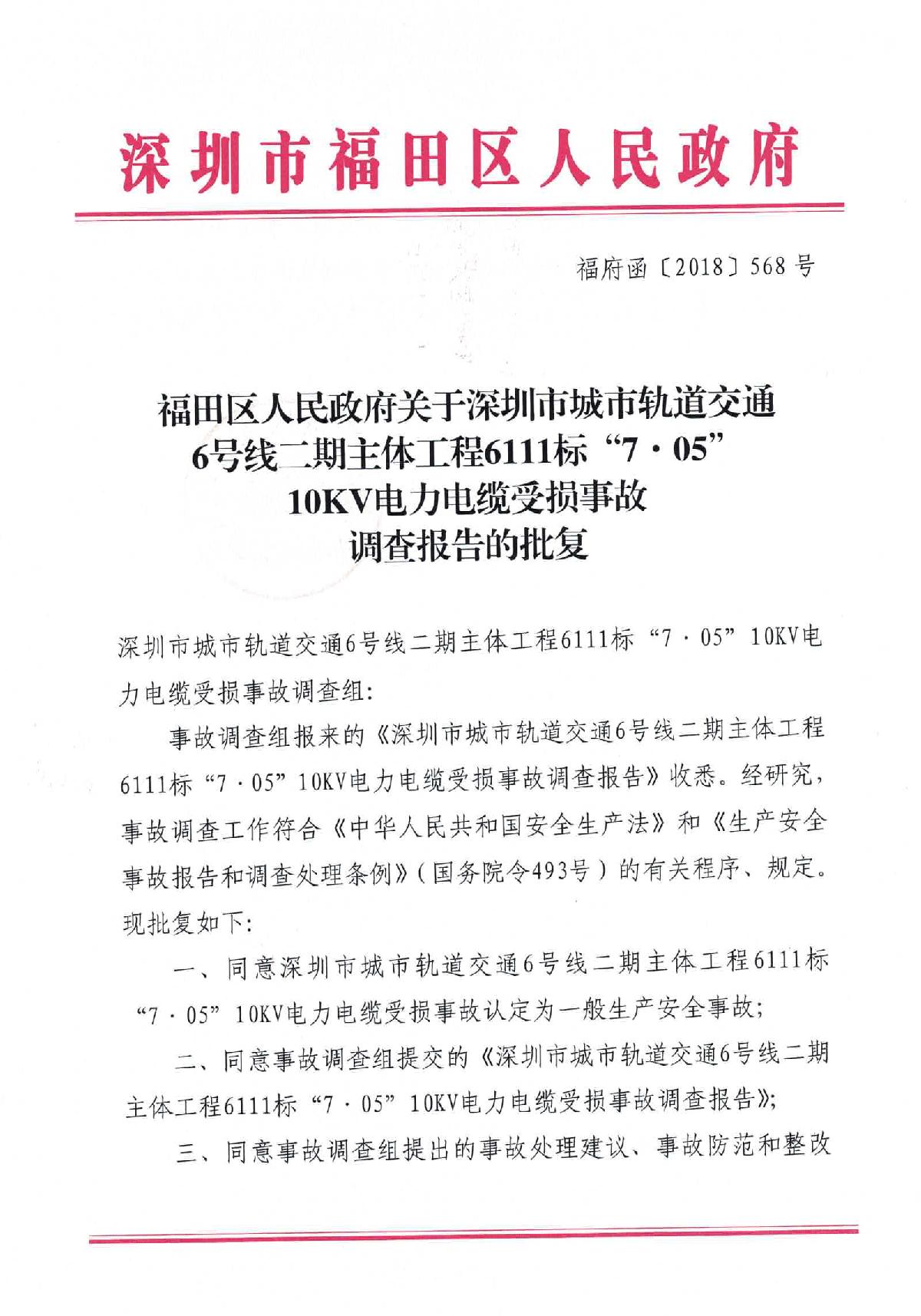 福田區(qū)人民政府關(guān)于深圳市城市軌道交通6號線二期主體工程6111標“7.05”10kv電力電纜受損事故調(diào)查報告