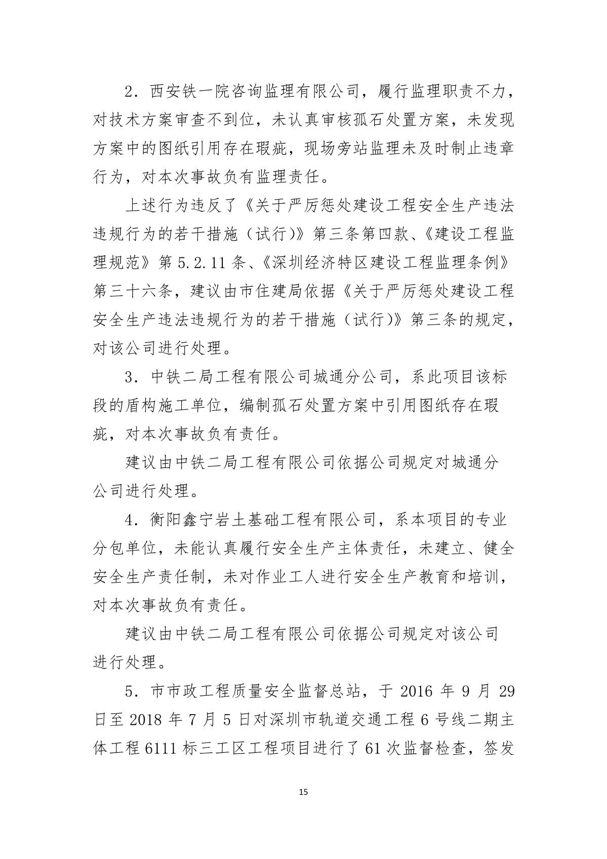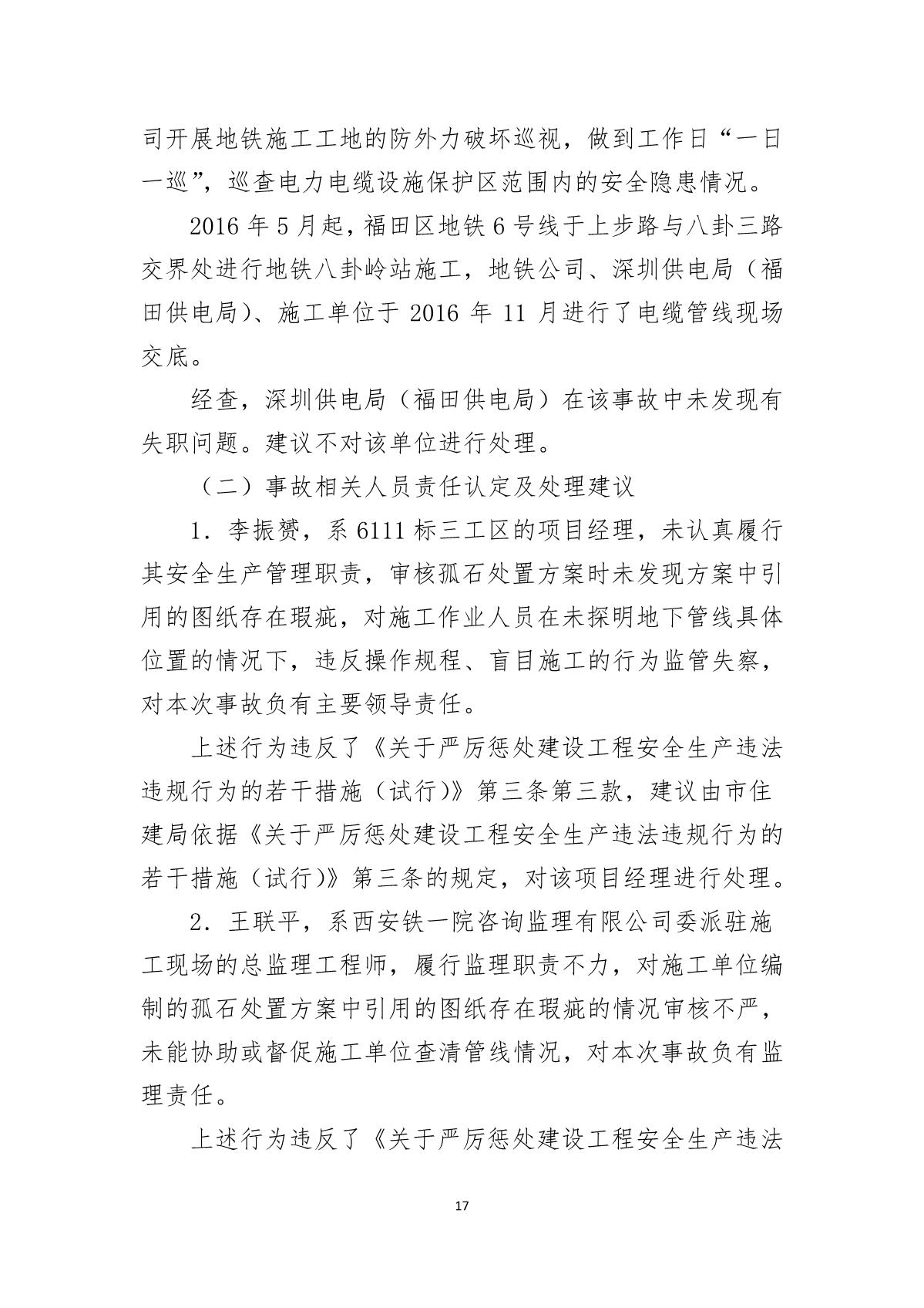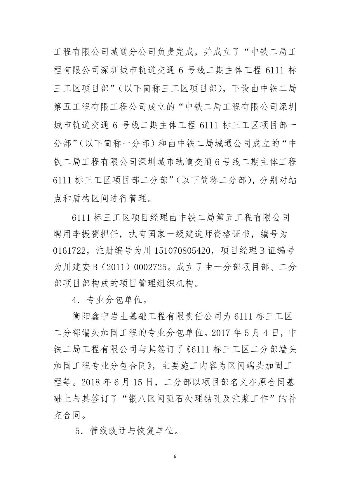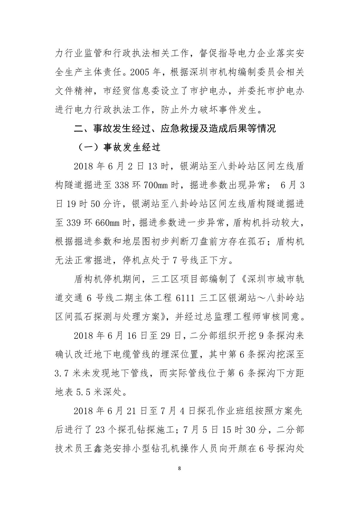福田區(qū)人民政府關(guān)于深圳市城市軌道交通6號線二期主體工程6111標“7.05”10kv電力電纜受損事故調(diào)查報告