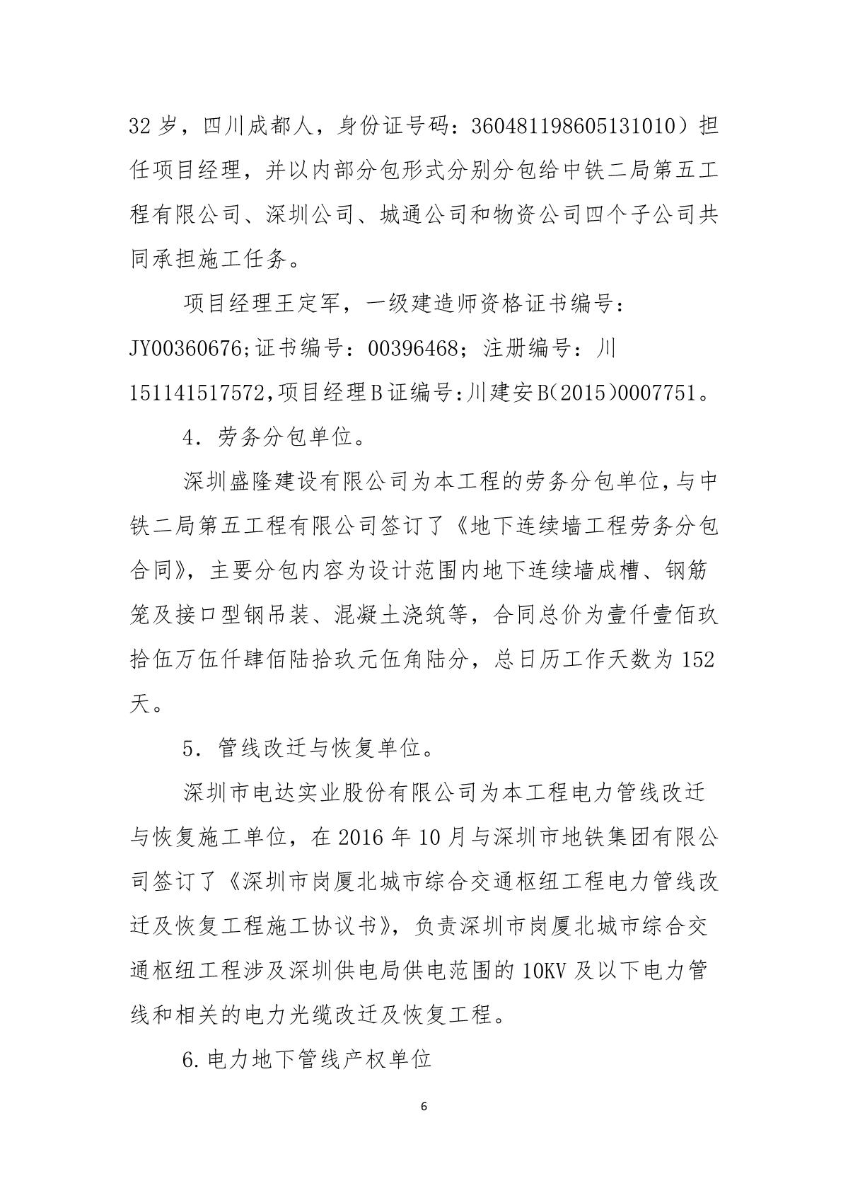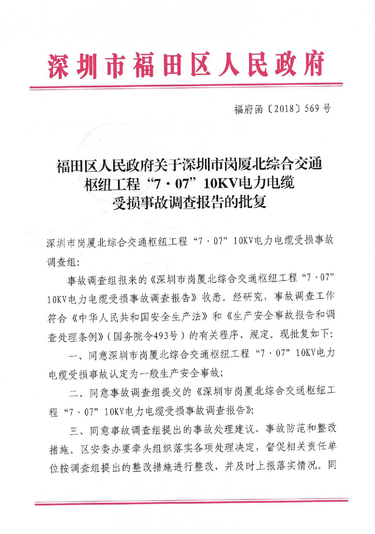 福田區(qū)人民政府關(guān)于深圳市城市軌道交通6號線二期主體工程6111標“7.05”10kv電力電纜受損事故調(diào)查報告