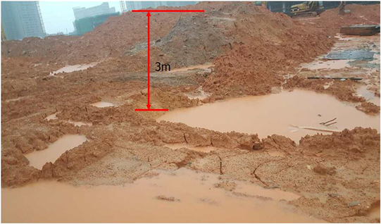 距離事發(fā)集水井南側約2米處有開挖土方堆填的土堆,土堆高約3m,坡度約為45°,面積約50*40㎡。(如下圖)