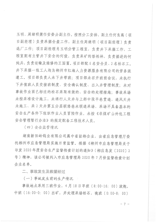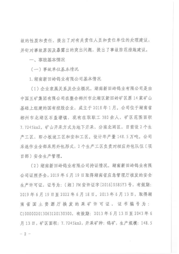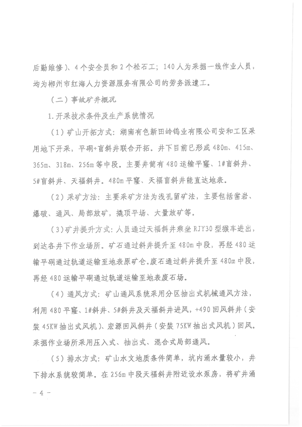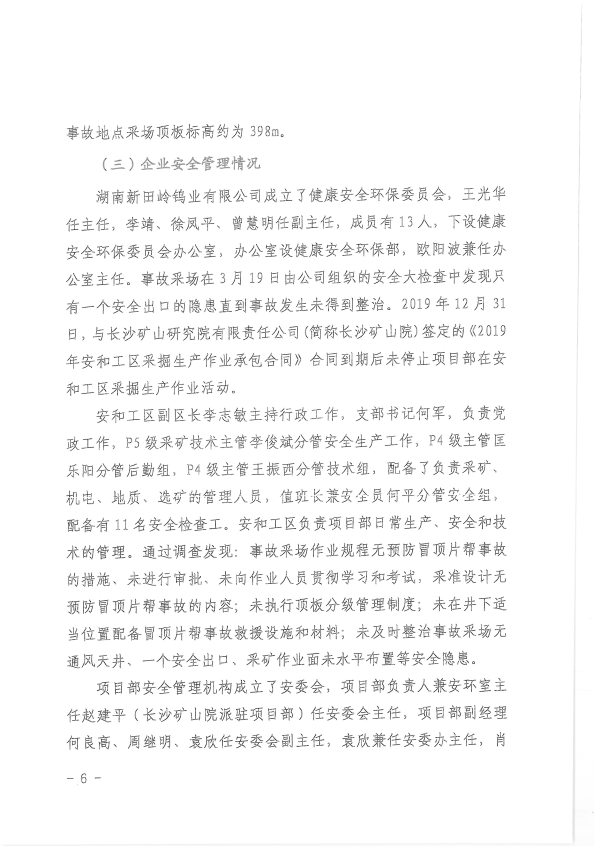 湖南新田嶺鎢業(yè)有限公司“4?19”冒頂片幫事故調(diào)查報(bào)告