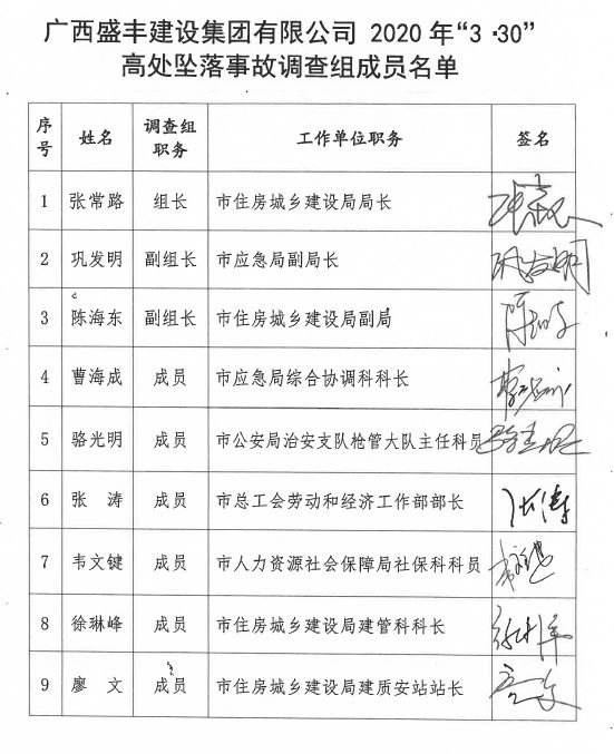廣西盛豐建設集團有限公司中央商務區·翡翠園15號樓工程2020年“3·30”高處墜落事故調查