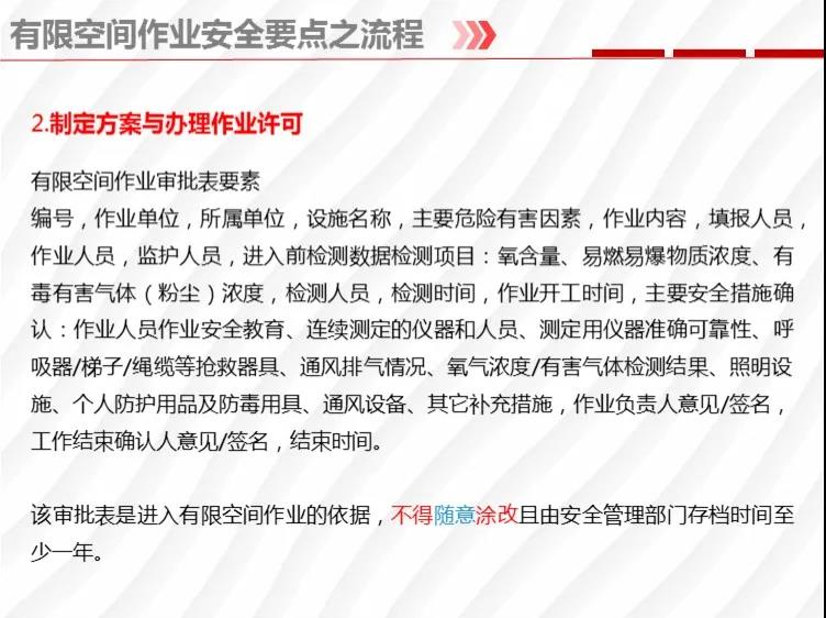 一要立即開展有限空間安全風險排查。春節假期剛過,各類企業集中復工復產,涉及有限空間作業安全的檢維修、調試行為增多,加之氣溫逐漸升高,造成有限空間中有毒有害氣體集聚,安全風險加劇。各地各有關部門要督促涉及有限空間作業的工礦商貿企業以及市政工程、垃圾發電、燃氣、熱力、排水、衛生、環保等重點單位、重點區域、重點場所開展全方位的風險隱患排查。對發現的風險隱患,企業要逐一登記造冊,向負有安全監管職責的部門報告,并按照《有限空間作業安全指導手冊》(應急廳函〔2020〕299號)要求落實各項防范措施。