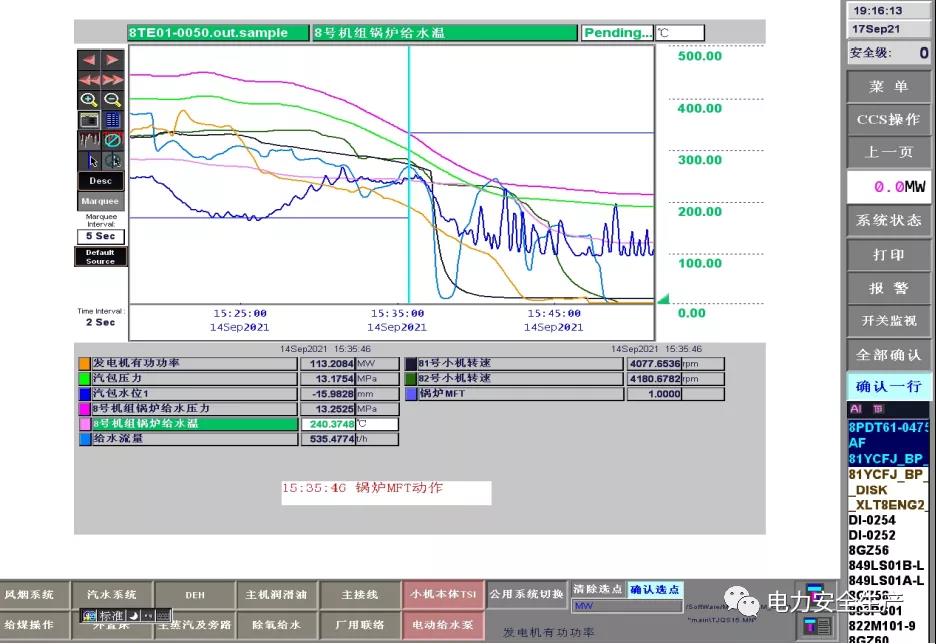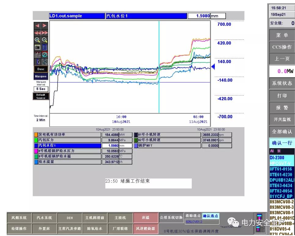 5.調閱 9 月 14 日機組運行參數,帶壓堵漏工作開始前沒有采取降負荷、降給水壓力及溫度等安全預控措施,也沒有維持運行參數穩定的具體措施。