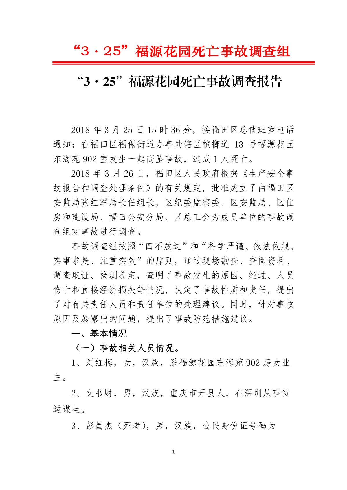 “1.18”福田區禮園工程項目死亡事故調查報告