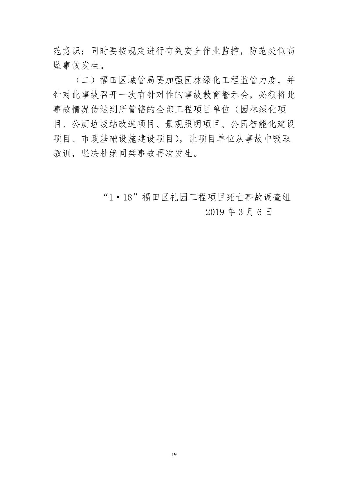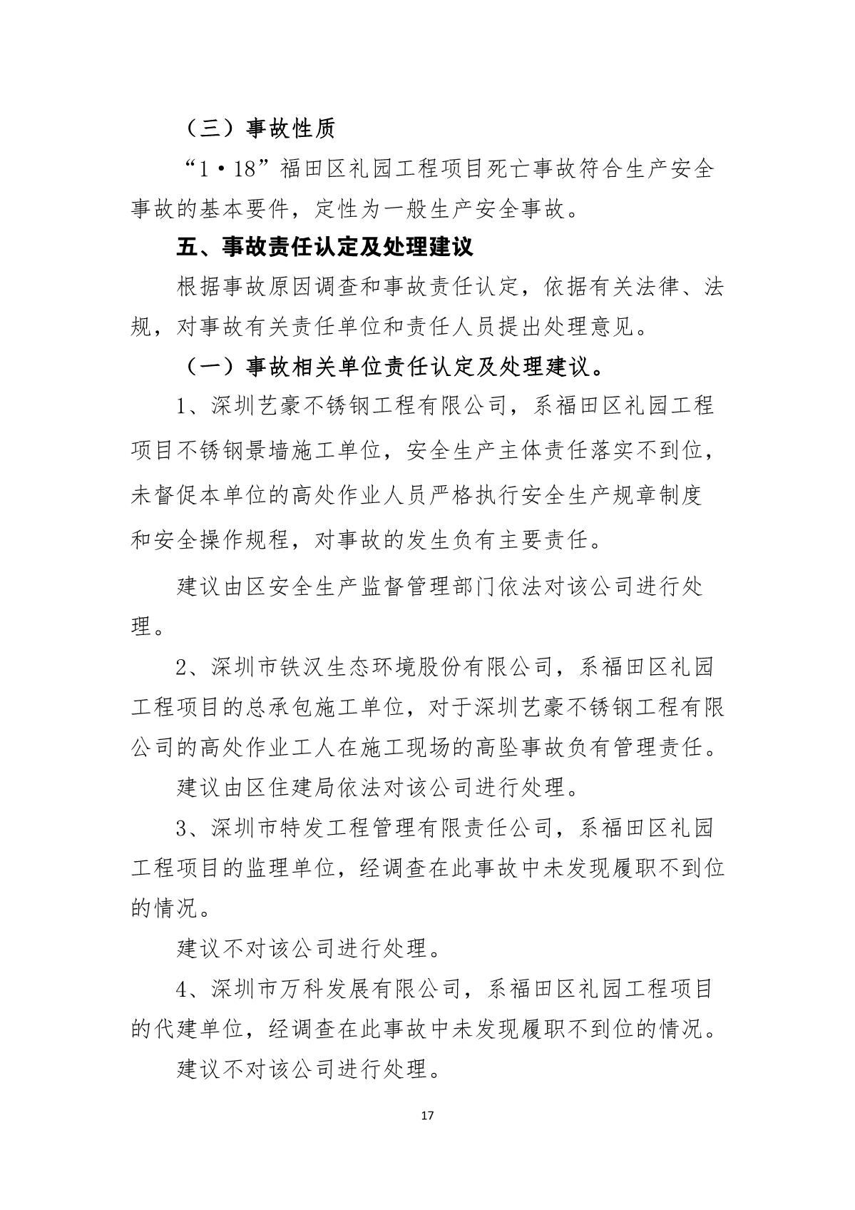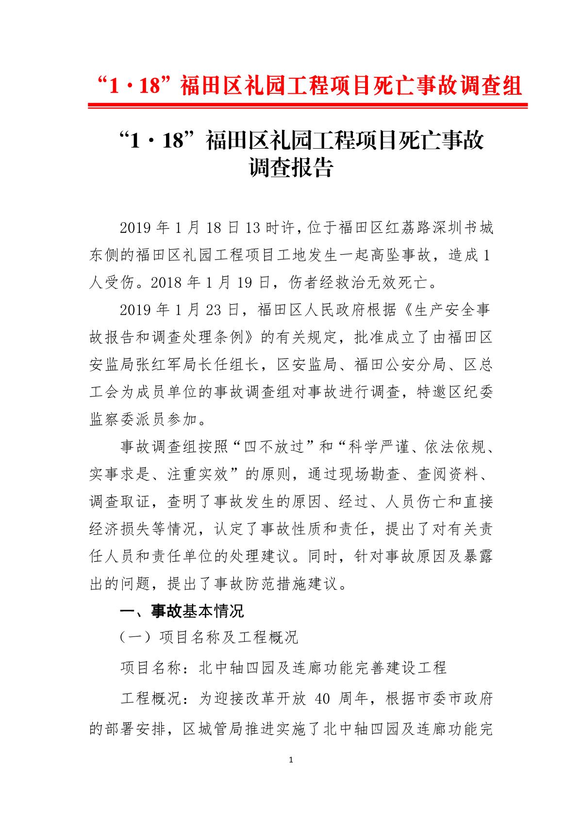 “1.18”福田區禮園工程項目死亡事故調查報告