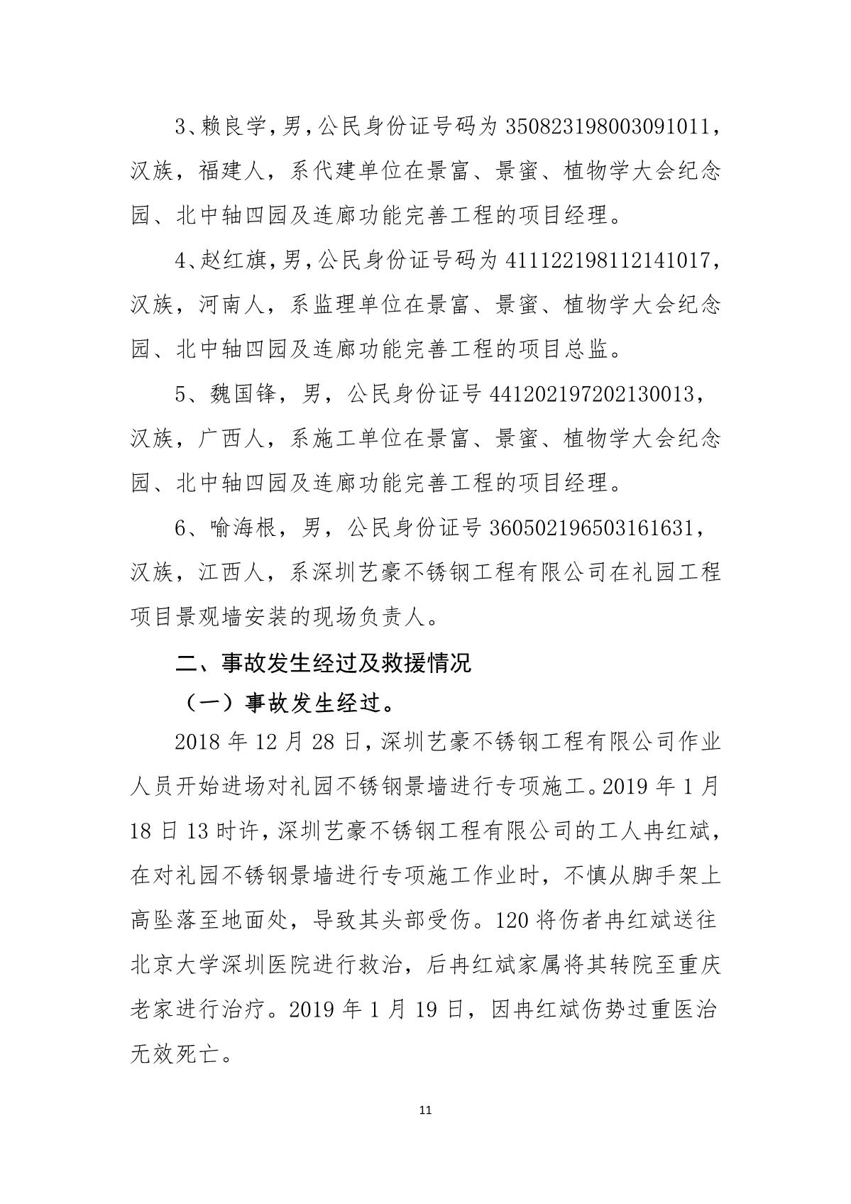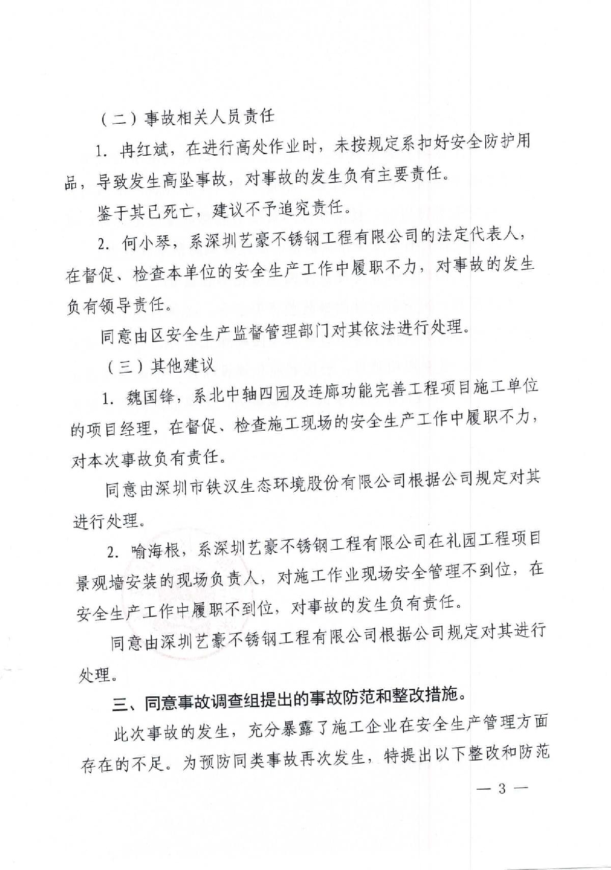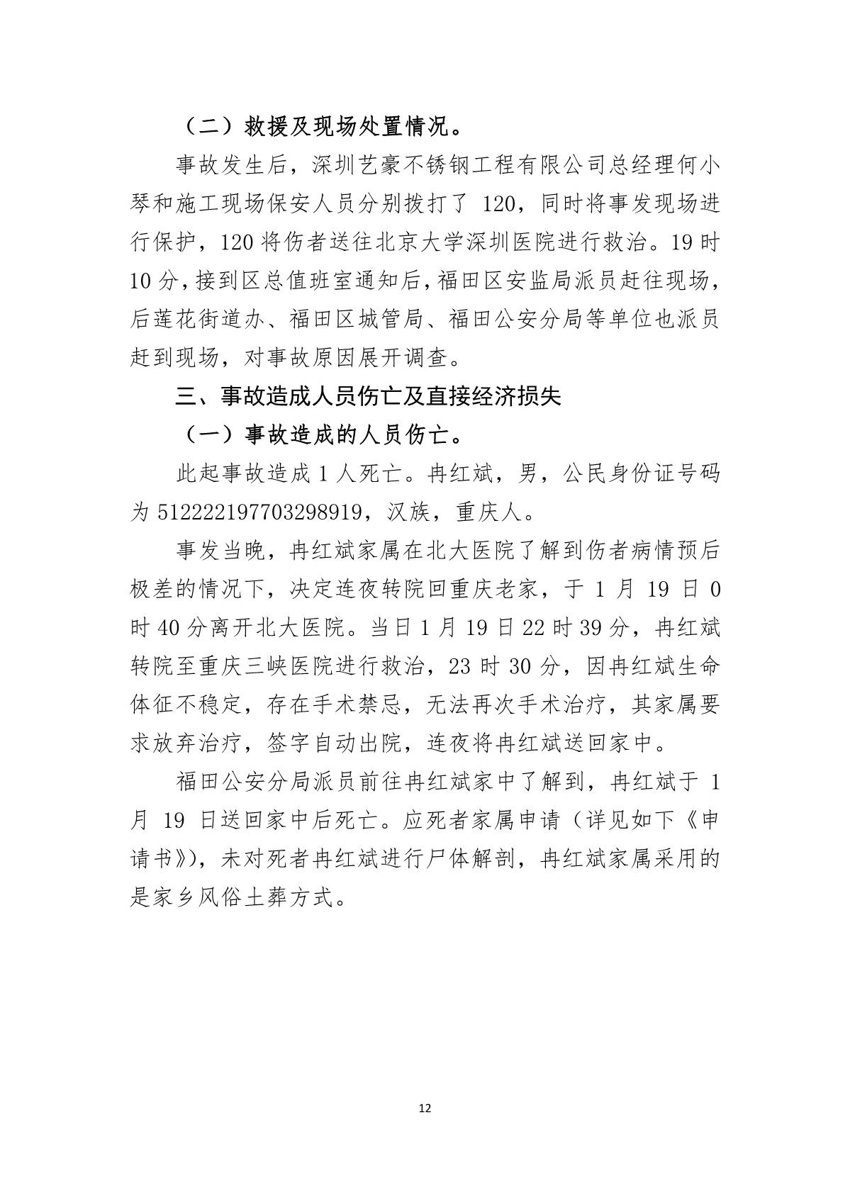 “1.18”福田區禮園工程項目死亡事故調查報告