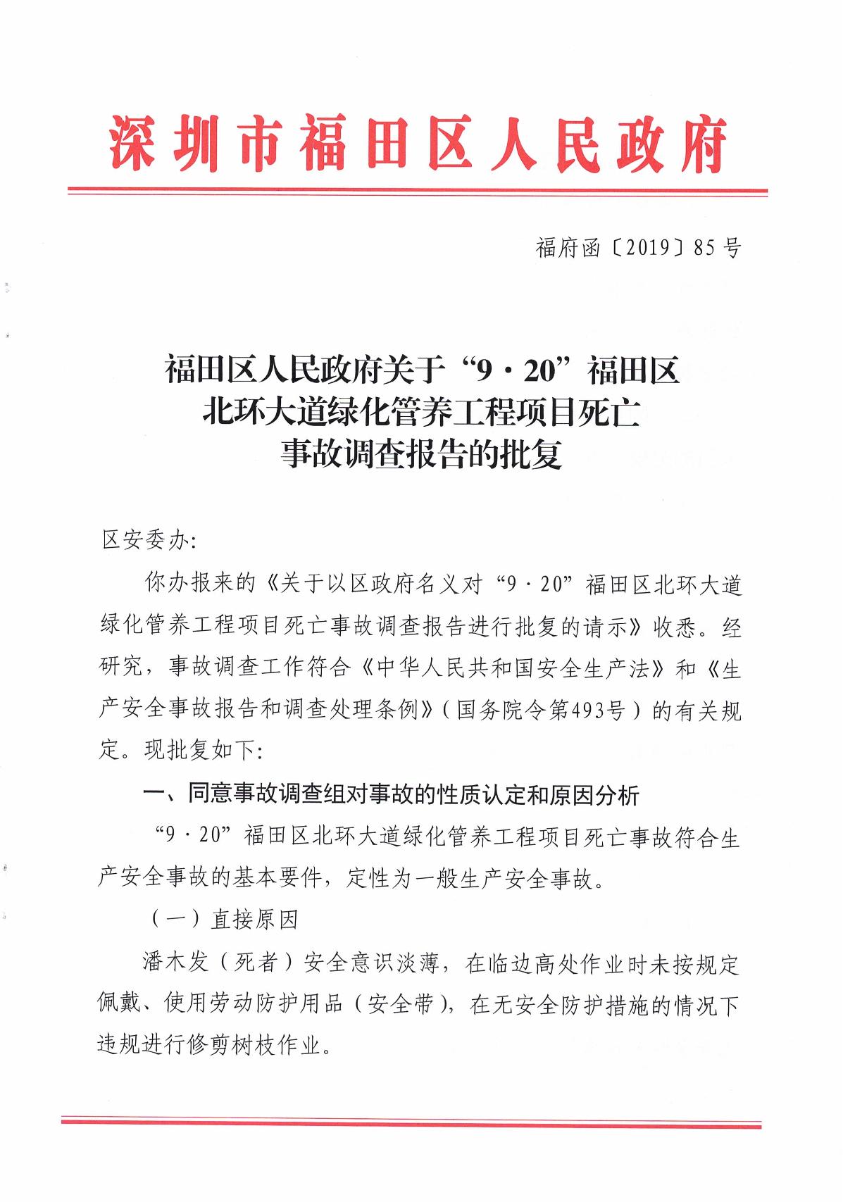 “9.20”福田區北環大道綠化管養工程項目死亡事故調查報告