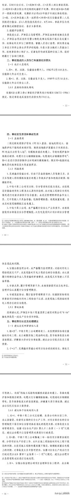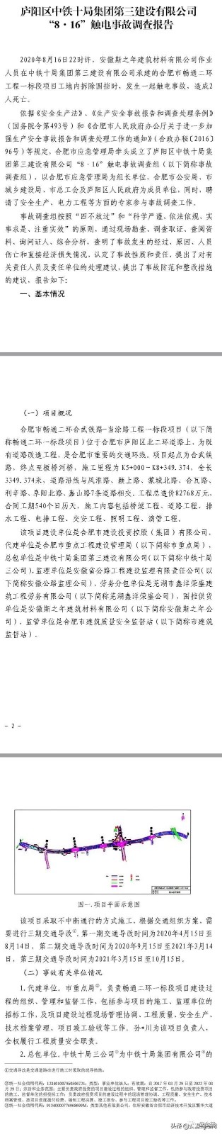 12月2日,合肥應急管理局在其官網發布廬陽區中鐵十局集團第三建設有限公司 “816”觸電事故調查報告。