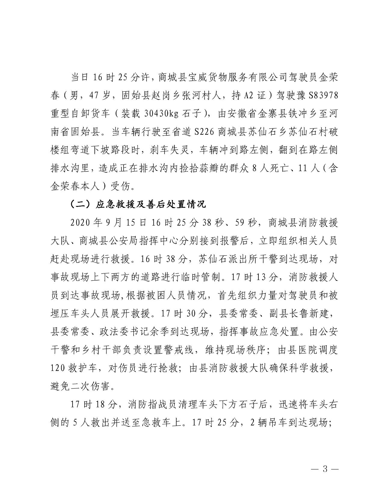 2020年9月15日16時25分許,河南商城縣發生一起貨車掩壓路邊撿拾蒜瓣村民事故,