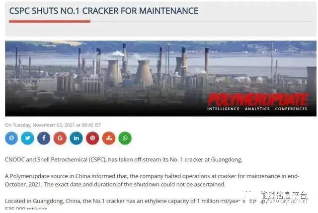 另外,中海油殼牌位于廣東的第一裂解裝置近日進入維修。消息人士透露,此次維護暫時無法確定關閉的確切日期和持續時間。該裂解裝置乙烯生產能力為100萬噸/年,丙烯生產能力為53.5萬噸/年。